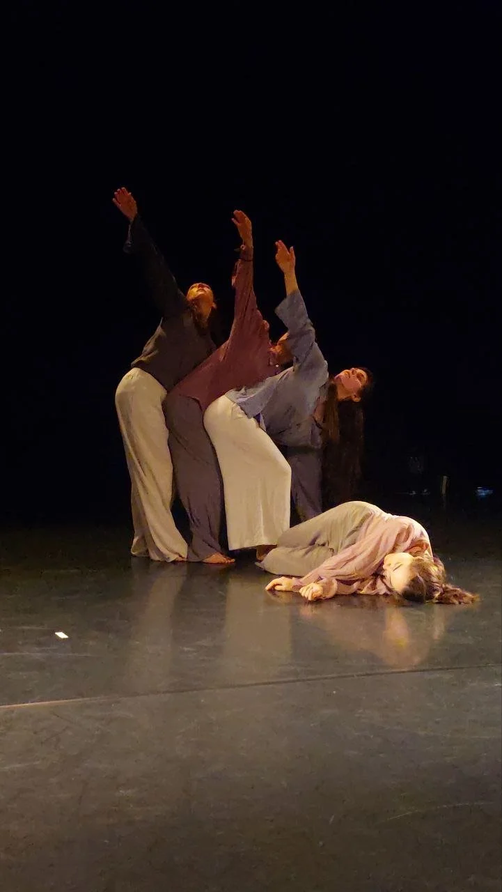 Der Tanzperformance liegt die Idee vom Individuum in der Gemeinschaft zugrunde. Menschen, eingeklemmt zwischen Erwartungen, Pflichten, eigenem Anspruch und äußeren Umständen, kämpfen mit dem Gefühl, nicht zu genügen. Sie hetzen, straucheln, fangen sich – jede*r für sich, isoliert in der eigenen Welt aus Druck und Zweifel. Doch mitten im Chaos geschieht etwas: Ein Innehalten, ein Blick, eine Berührung. Zögerlich entstehen Verbindungen. Die Erkenntnis wächst: Ich bin nicht allein. Deine Last ist meiner ähnlich. Schritt für Schritt formen sich Begegnungen, die aus Isolation ein Netz knüpfen, aus Einzelkämpfer*innen wächst eine Gemeinschaft. Ein Arm stützt, eine Schulter trägt, ein Rücken gibt Halt. Ruhe kehrt ein.